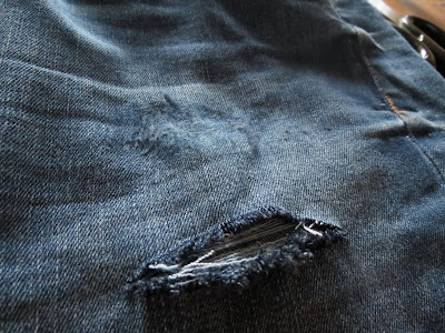 | jetzt könnt ihr eure Hose noch ein bisschen älter aussehen lassen. Nimmt hierfür eine Feile oder einen Schleifstein und feilt drauf los 🙂 |