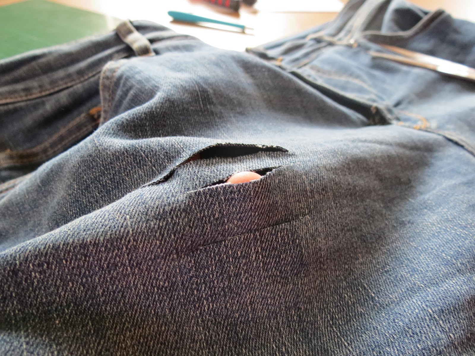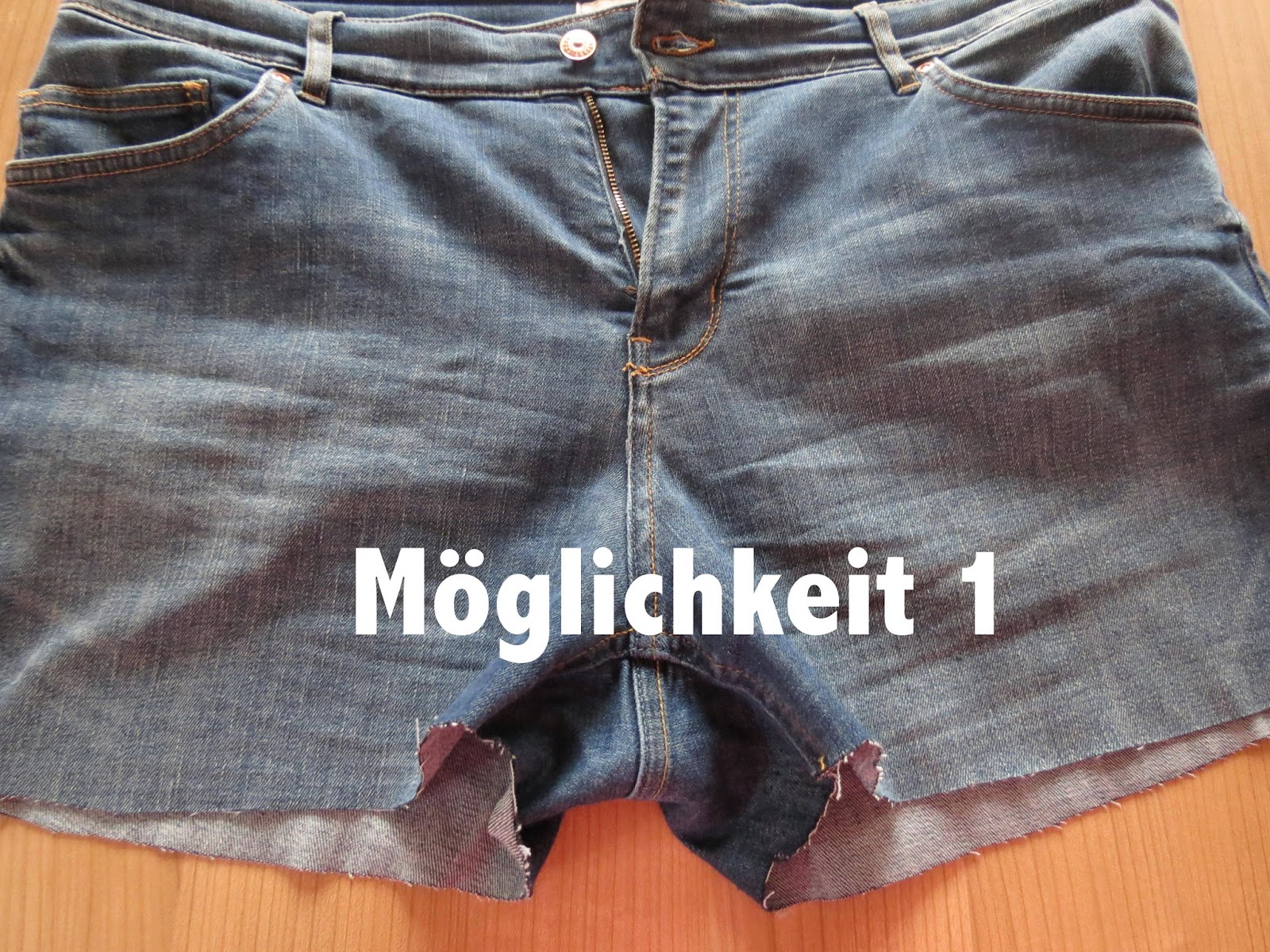 Da auch ich nicht immer Glück habe beim Kauf, hab ich mir eine alte knielange Jeans zur trendigen Shorts gebastelt.