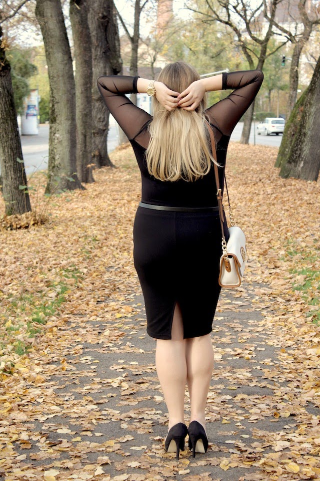 Dieses Outfit könnte man denke ich sowohl zu Familienfeiern als auch zu nem Partyabend in der Disco tragen und zählt für mich als “kleines Schwarzes” 🙂 Mein MakeUP kommt auf den Bildern übrigens immer sehr dezent rüber, obwohl ich mich extra etwas stärker schminke. Ich persönlich finde bei klassischen Outfits die Betonung auf den Lippen schön und habe mich hier für einen Rotton entschieden (gemixt aus mehreren Lippenstiften).