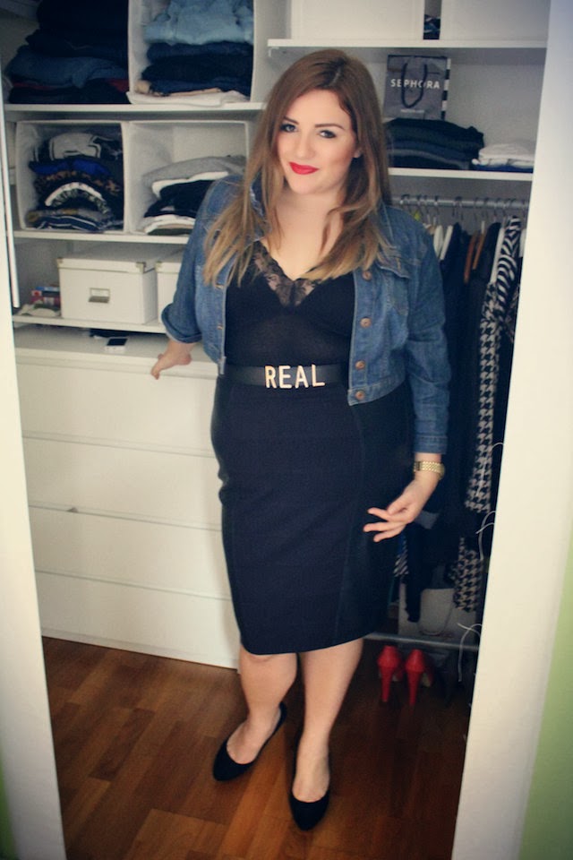 Ich bin total der Fan von Bleistiftröcken und dieser hier ist besonders toll, weil er ein Mix aus Leder und Stoff ist. Dazu kombiniert habe ich ein altes Top aus meinen Kleiderschrank und meine Jeansbolerojacke. Der Gürtel ist auch neu und ein absoluter Hingucker!