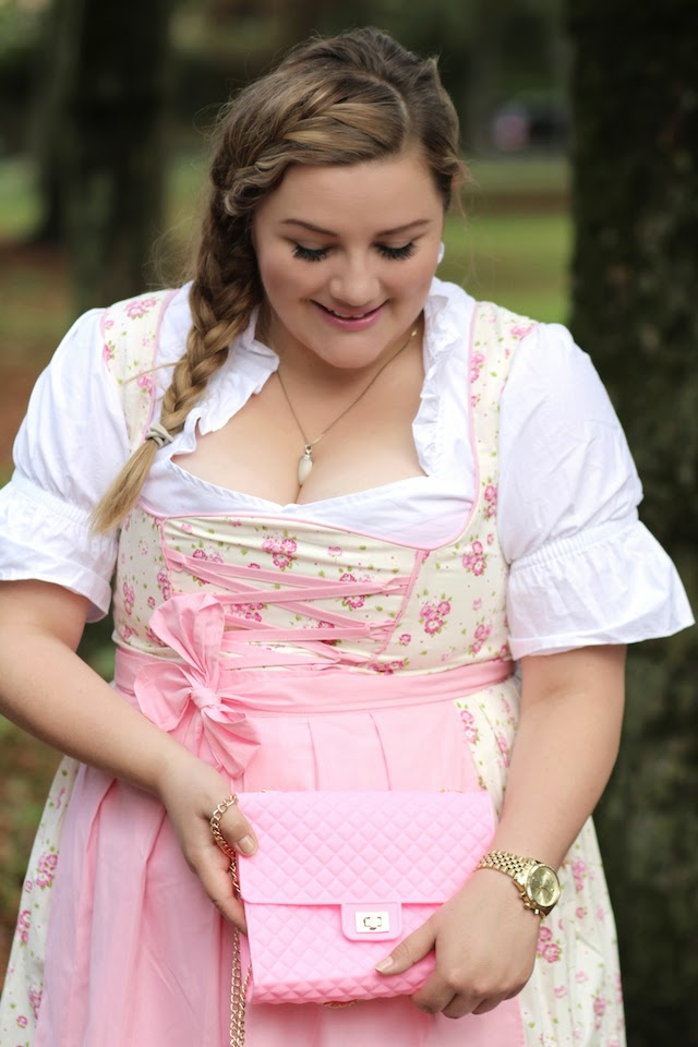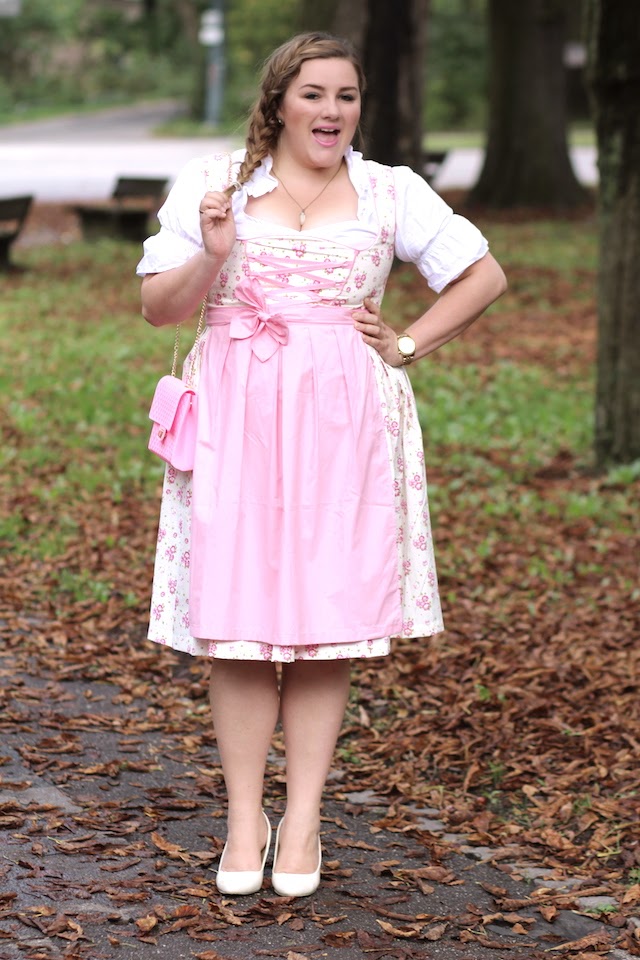 Ich bin wieder da und dies mit einem neuen Plus Size Outfit für euch. Als bayerisches Mädl zeig ich euch heute ein Dirndl. Als kurvige Frau kann man Dirndl perfekt tragen wie ich finde, aber es muss schon passen. In der Farbwahl ist man eigentlich sehr frei, es gibt keine Regel – alles was gefällt kann getragen werden. Ich träume immer von einem grünen Dirndl mit rosa Schürze, aber da es diese Farbkombi nicht gab, fiel meine Wahl auf dieses hier. Kombiniert habe ich es mit meiner kleinen Gummi “Fake Chanel” aus Kopenhagen und mir gefällt es sogar sehr gut 🙂