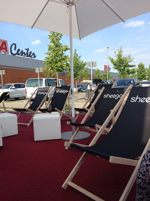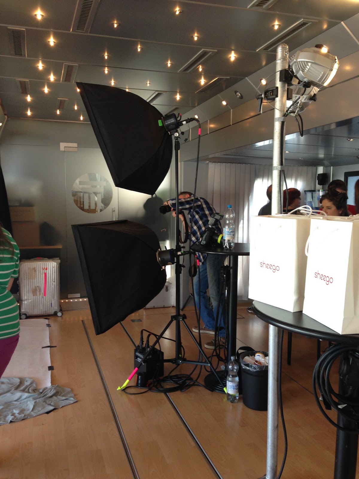 Ich habe mir den Truck irgendwie kleiner vorgestellt…und dann steht da dieses große Teil mit wunderschöner Sitzmöglichkeit im Außenbereich. Im Truck war ein kleiner Showroom mit der aktuellen Sheegomode, das Fotostudio mit Fotograf Dieter und das fleißige Styling-Team.