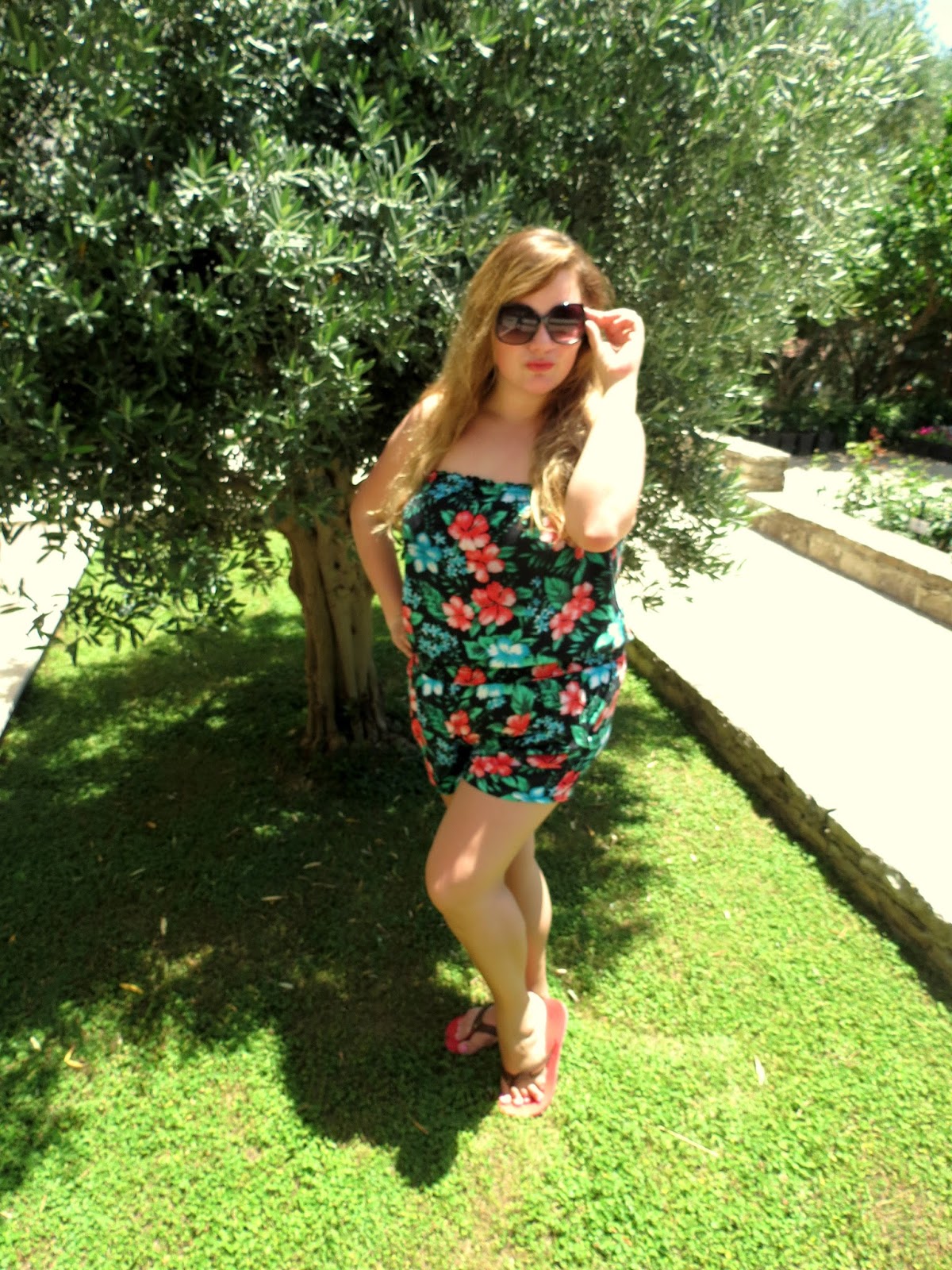 Hier trage ich einen bunten Jumpsuit von C&A Clockhouse, den ich mir letztes Jahr gekauft habe.